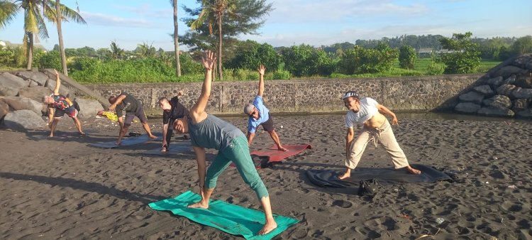 DENPASAR - Minggu pagi yang cerah di Pantai Masceti, semilir angin laut dan deru ombak mengiringi langkah Komunitas Pesemetonan Seger Oger Bitra yang kembali menggelar kegiatan rutin bertajuk "Sehat Harmoni dengan Yoga". Dipandu oleh Instruktur Agung Raka Yuda, para peserta diajak menyelami gerak tubuh, napas, dan pikiran dalam satu relasi harmoni yang mendalam.