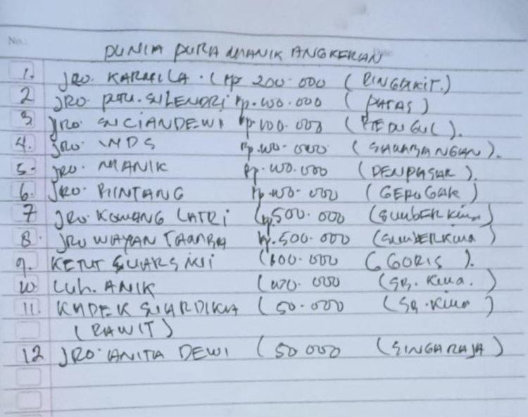 Jro Karmila, Jro Putu Sulendri, Jro Suciandewi, Jro WDS, Jro Anita Dewi, Jro Manik, Jro Bintang, Jro Komang Latri, Jro Wayan Tamba, Luh Anik, Ketut Suwarsini, Kadek Suwardika (Rawit), Jro Ketut Witana (Jro Belanda) - Eliska Sari Bungalows (menginap)