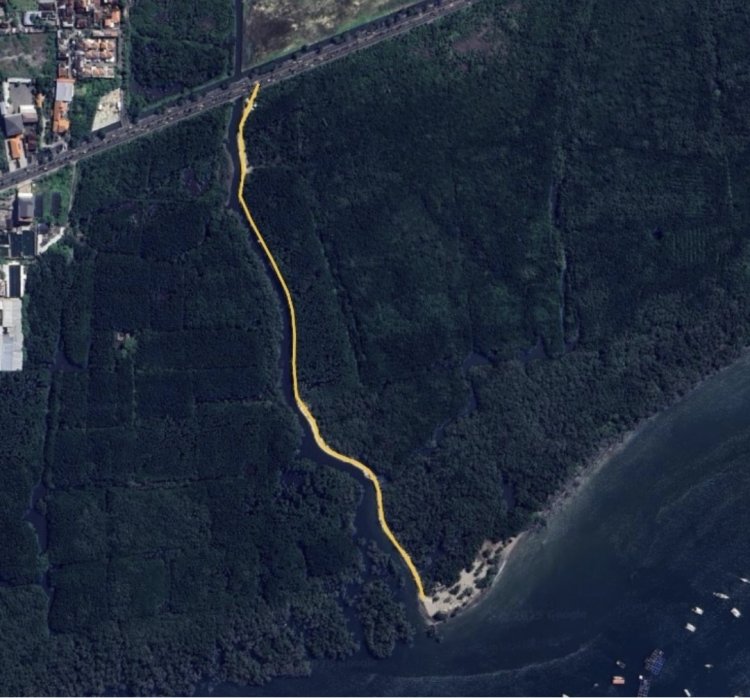 Dari pengamatan lapangan, terlihat adanya pelebaran jalan sekitar tiga meter dengan urugan limestone yang memperkeras permukaan tanah. Alih-alih membuat jalur melayang di atas mangrove untuk menjaga ekosistem, proyek ini justru mengorbankan vegetasi mangrove di sekitar sungai. Lebarnya jalan menimbulkan dugaan bahwa jalur tersebut bukan sekadar akses untuk kegiatan keagamaan seperti Melasti, melainkan bisa dilalui truk besar atau tronton—menuju lokasi yang disebut-sebut bakal menjadi kawasan industri baru.