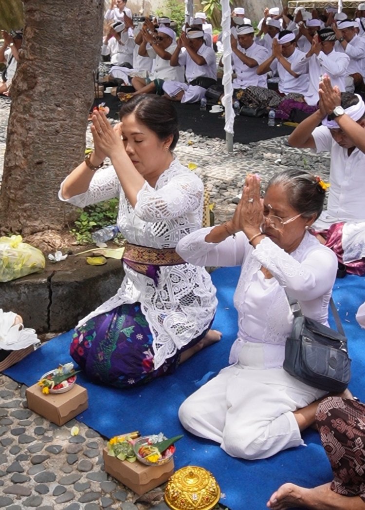 Terlihat salah satu warga masyarakat Buleleng Komang Anita Sari Dewi yang selalu memohon kepada Ida sesuhunan untuk terwujudnya kesejahteraan bagi warga masyarakat Buleleng kedepannya.