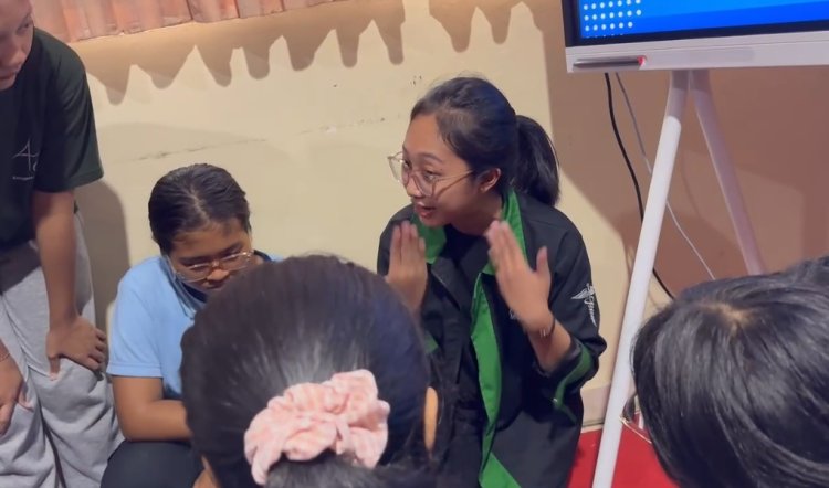 Materi kemudian disampaikan secara bertahap oleh tim mahasiswa FKIK. Pemaparan konsep dasar Bantuan Hidup Dasar dilakukan melalui presentasi interaktif, dilanjutkan dengan simulasi Resusitasi Jantung Paru (RJP) dan penanganan choking. Dalam sesi praktik, siswa diberikan kesempatan untuk mempelajari teknik kompresi dada yang benar, membuka jalan napas, serta langkah pertolongan pertama pada korban tersedak.