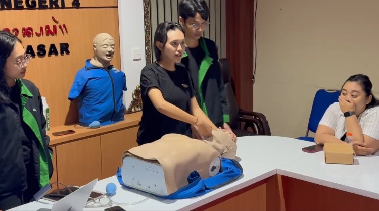 Tingkatkan Kesiapsiagaan Darurat, Mahasiswa FKIK Warmadewa Bekali Siswa SMAN 4 Denpasar Pelatihan BHD