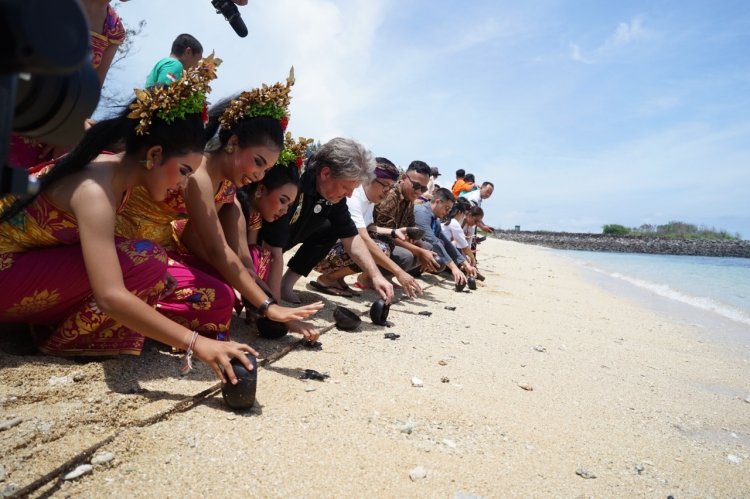 Rainer Zietlow bergabung dengan komunitas Kura Kura Bali pada Selasa, 4 November 2025 untuk melepaskan anak-anak penyu ke laut, melambangkan semangat keharmonisan dan pembaruan yang menjadi ciri khas era baru Bali.